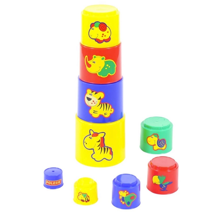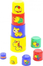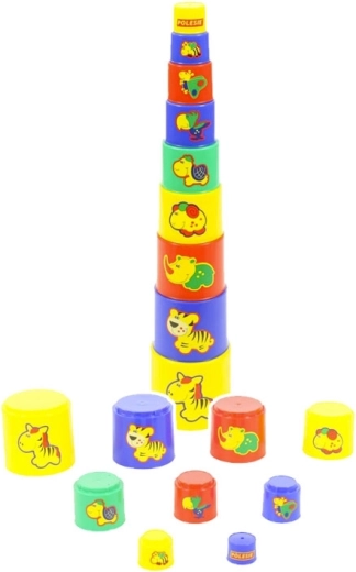 Ten kolorowy zestaw kubeczków pozwala dzieciom układać je jeden na drugim, tworząc wysoką wieżę, lub wkładać jeden w drugi. Każdy element jest lekki, przyjemny w dotyku i ozdobiony uroczymi zwierzątkami, co zachęca do wielokrotnego odkrywania i nauki poprzez zabawę.