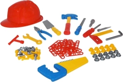 Ten bogato wyposażony zestaw narzędzi oferuje dzieciom bezpieczny i angażujący sposób na naśladowanie pracy dorosłych. Różnorodne elementy wspierają sprawność palców, precyzję ruchów oraz logiczne myślenie podczas łączenia poszczególnych części. Dzięki kaskowi i szerokiej gamie narzędzi dzieci doświadczą realistycznej zabawy w rzemieślników.