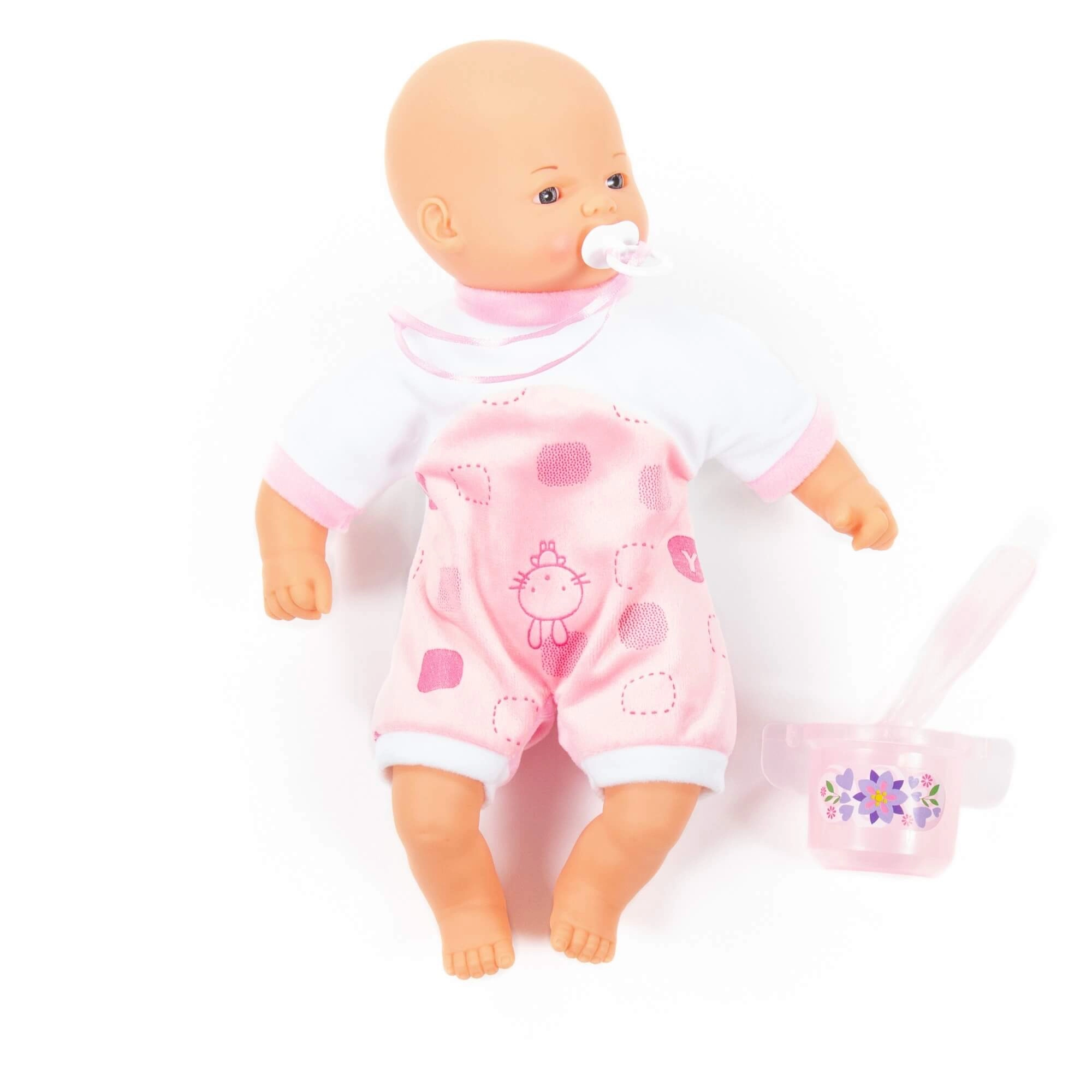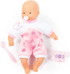 Ta urokliwa laleczka z miękkim ciałkiem jest idealna do pierwszych zabaw w mamę i tatę. Dzięki dołączonemu smoczkowi i zestawowi do karmienia dzieci mogą ćwiczyć opiekę oraz rozwijać wyobraźnię i małą motorykę.