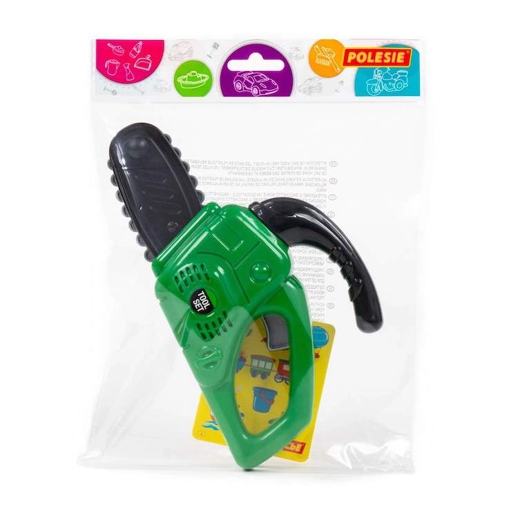 Ta dziecięca piła łańcuchowa została zaprojektowana jako bezpieczna zabawka inspirowana prawdziwym narzędziem. Dzięki wyrazistemu zielonemu kolorowi i realistycznym detalom zachwyci małych majsterkowiczów i pobudzi ich fantazję podczas wspólnej zabawy w domu i w ogrodzie.