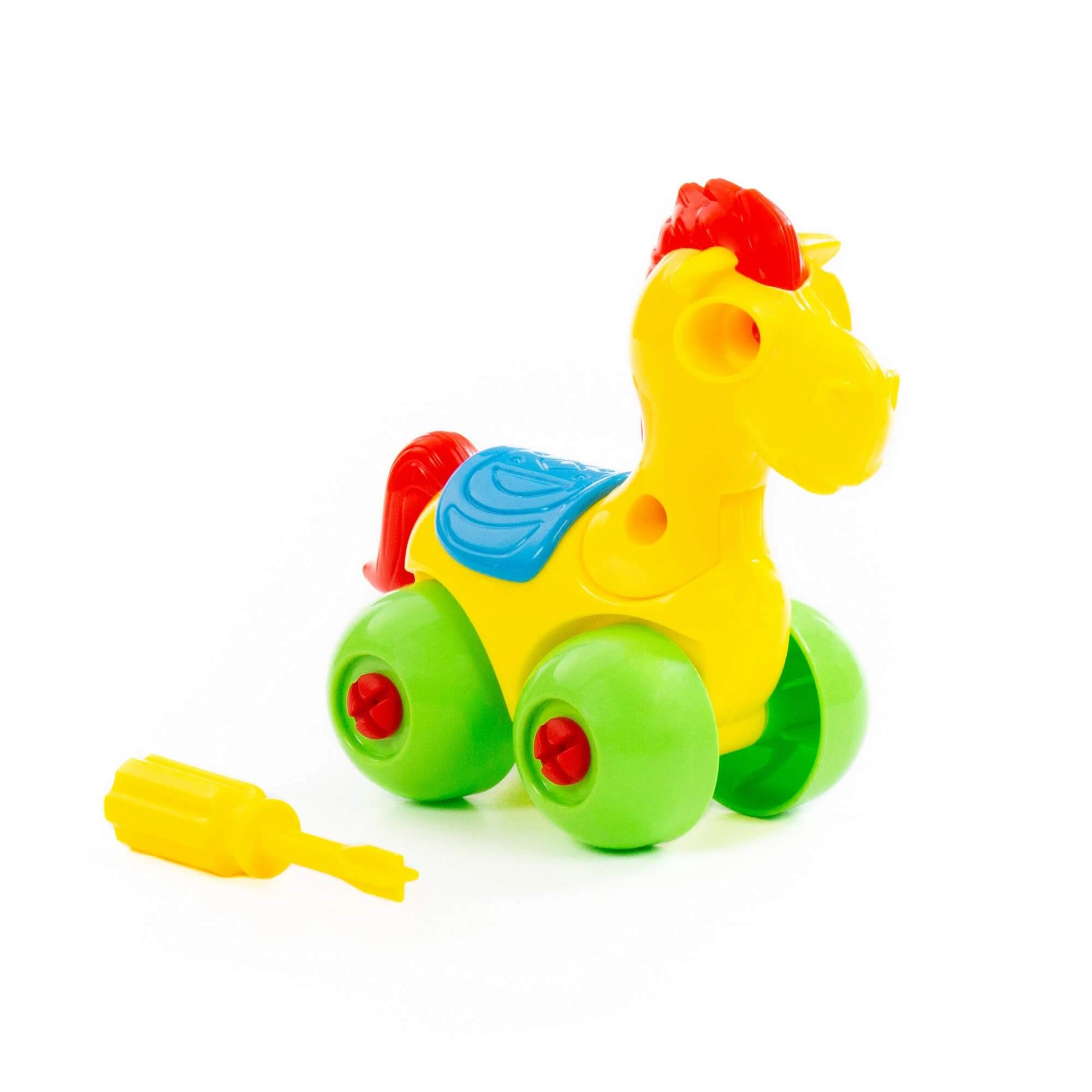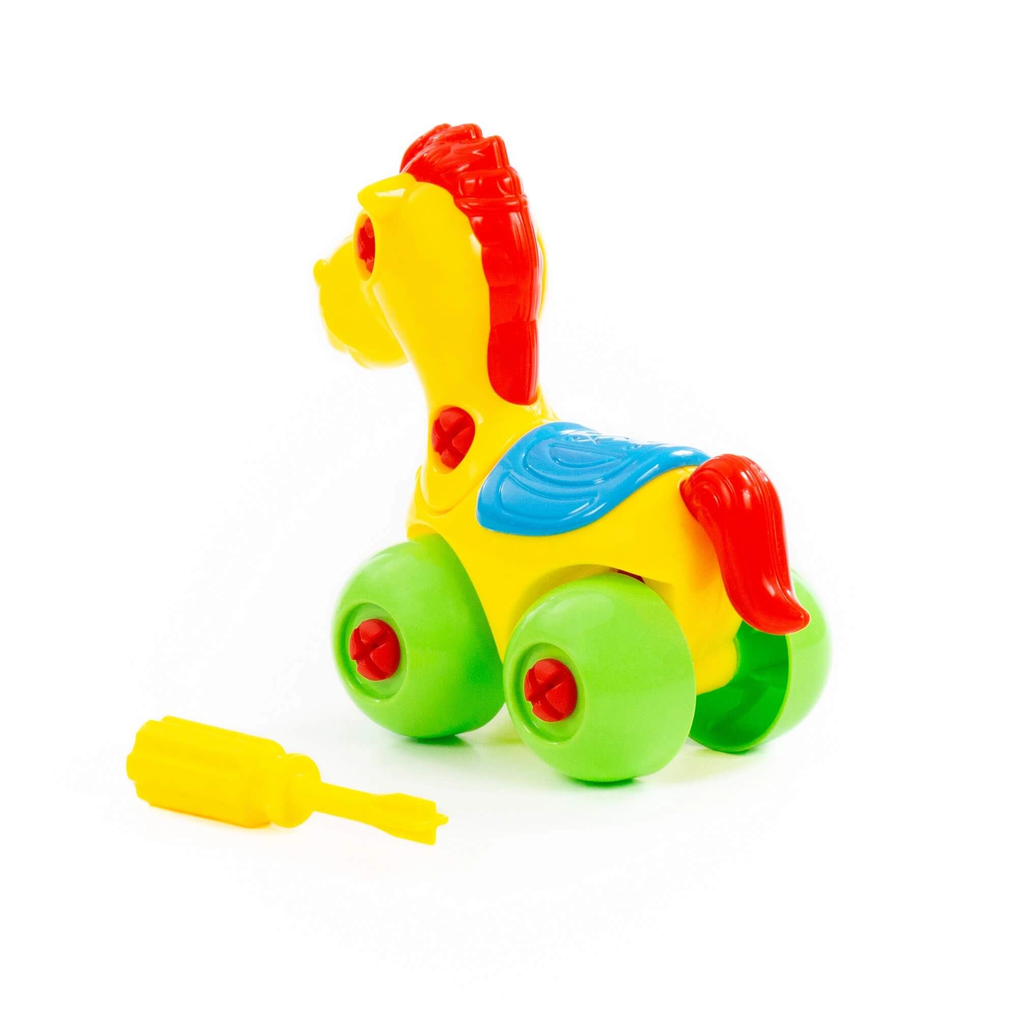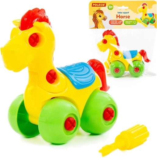 W zestawie znajduje się dziecięcy śrubokręt, dzięki któremu dzieci łatwo rozłożą konika i ponownie go złożą. Świetny trening cierpliwości i zręczności.