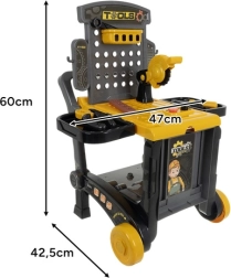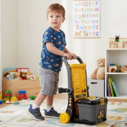 Odkryj uniwersalny dziecięcy zestaw warsztatowy 3w1, który zamienia się w warsztat, wózek oraz taczkę. Zestaw 59 elementów wspiera kreatywną zabawę, rozwój małej motoryki i uczy dzieci podstaw pracy z narzędziami. Praktyczna walizka na narzędzia pomaga utrzymać porządek, kółka i uchwyt zapewniają mobilność, a duża powierzchnia oferuje wygodne miejsce do zabawy.