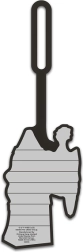 Na tylnej stronie znajduje się czytelne pole do wpisania imienia, telefonu i adresu, aby ułatwić szybki zwrot bagażu.