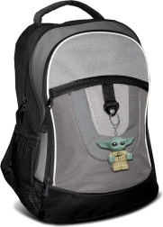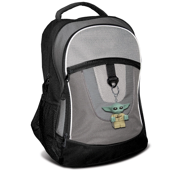 Detaliczna minifigurka GROGU z ikonicznymi dużymi uszami i nadrukiem na tułowiu to stylowy dodatek do kluczy, torby i szkolnego plecaka.