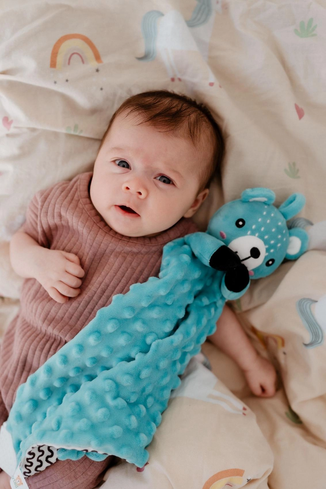 Wyjątkowo miękka, fakturowana powierzchnia zapewnia dzieciom przyjemną stymulację dotykową i poczucie bezpieczeństwa podczas zasypiania.