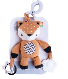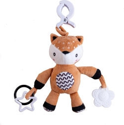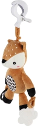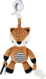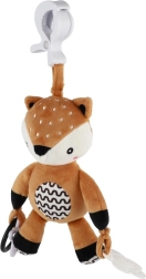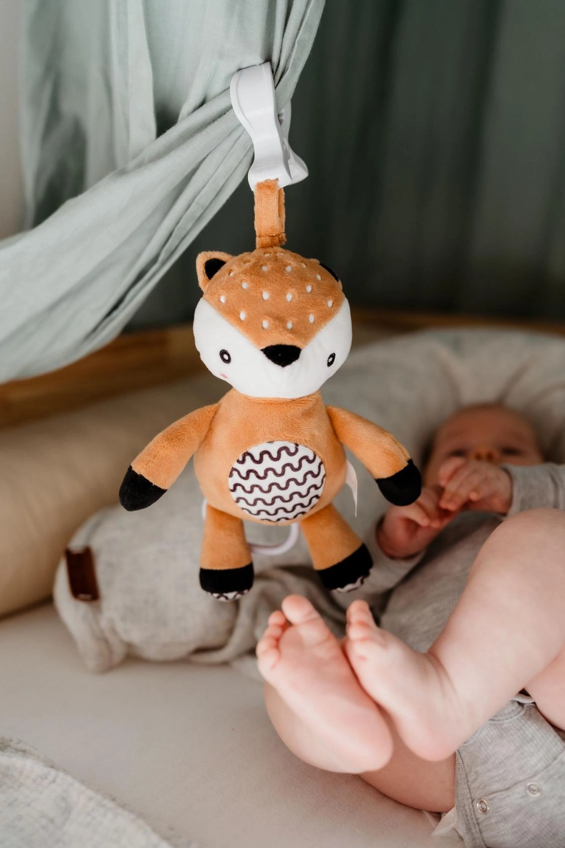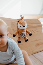 Pluszowy jelonek do zawieszenia to idealny towarzysz w domu i w podróży. Miękki materiał zachęca do dotyku i przytulania, a grzechotka wewnątrz brzuszka delikatnie angażuje maluszka i pomaga rozwijać zmysły. Dzięki uniwersalnemu klipsowi zabawkę łatwo przymocujesz do wózka, łóżeczka, fotelika samochodowego lub pałąka do zabawy.