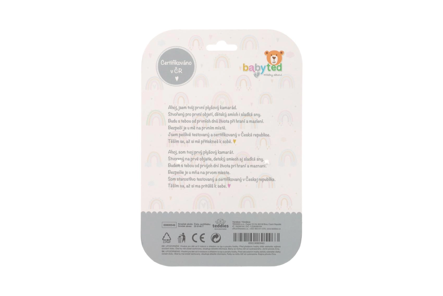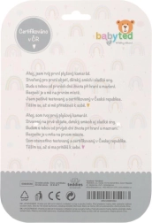 Na końcach łapek znajdziesz kształty gwiazdki i kwiatuszka, które wspierają chwytanie, koordynację ręka–oko i mogą służyć jako bezpieczne elementy do gryzienia. Zabawka jest certyfikowana w Czechach, więc spełnia rygorystyczne normy bezpieczeństwa dla dzieci od 0 miesięcy.