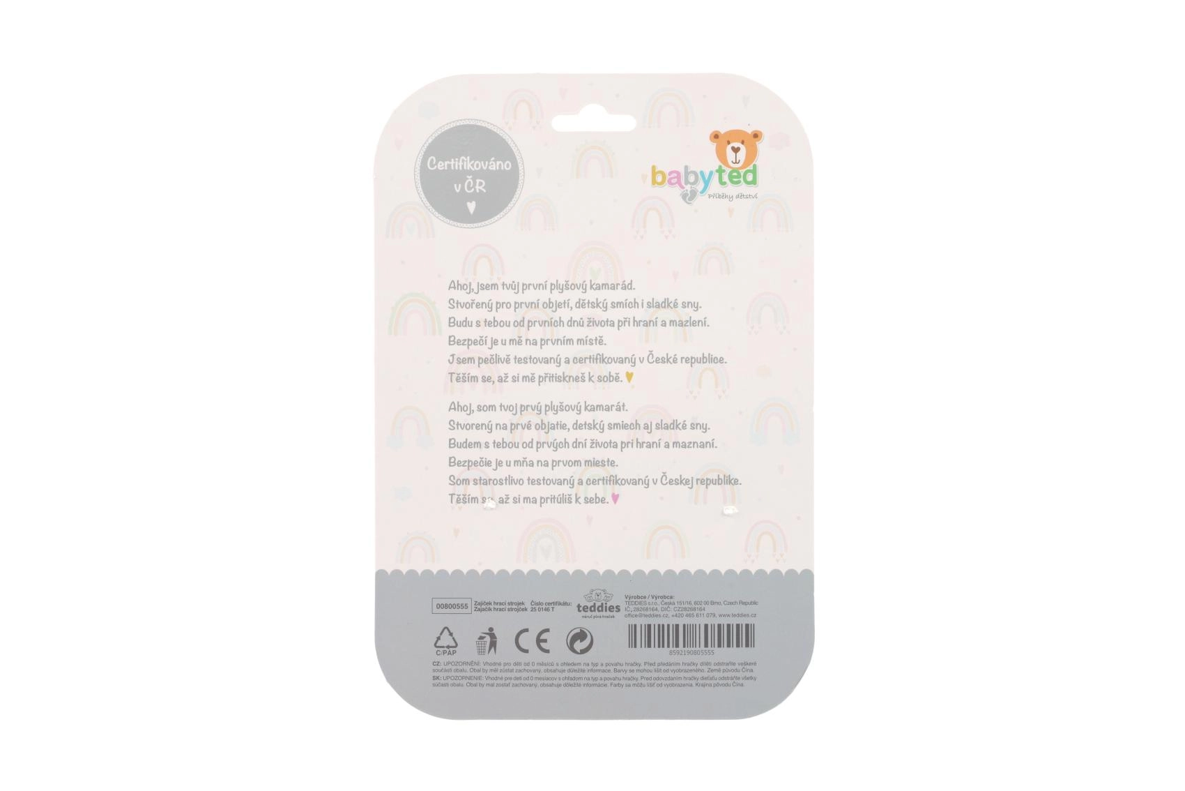 Mięciutki plusz zachęca do przytulania, a kontrastowe detale i delikatnie szeleszczące uszka wspierają rozwój wzroku i małej motoryki. Wysoka jakość wykonania i certyfikacja w Czechach gwarantują bezpieczne użytkowanie już od urodzenia.