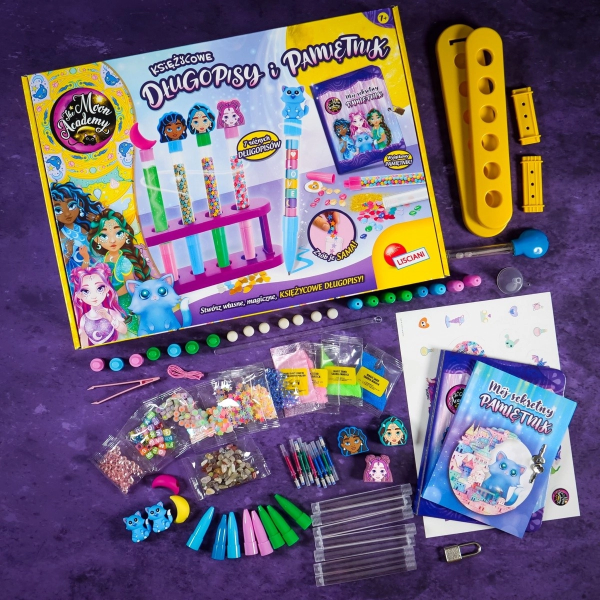 Zestaw Moon Academy wprowadza w zabawny świat nauki i art&craft dla dziewczynek, które chcą tworzyć i jednocześnie odkrywać. W opakowaniu znajdziesz wszystko, co potrzebne do zdobienia i personalizacji pamiętnika oraz do wykonania własnych kolorowych długopisów. Idealny do rozwijania kreatywności, motoryki małej i wyobraźni.