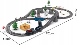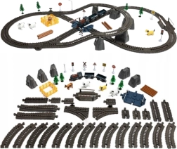 Długie plastikowe tory z rozjazdami, pętlami i przejazdami pozwalają budować proste okręgi i złożone sieci kolejowe.