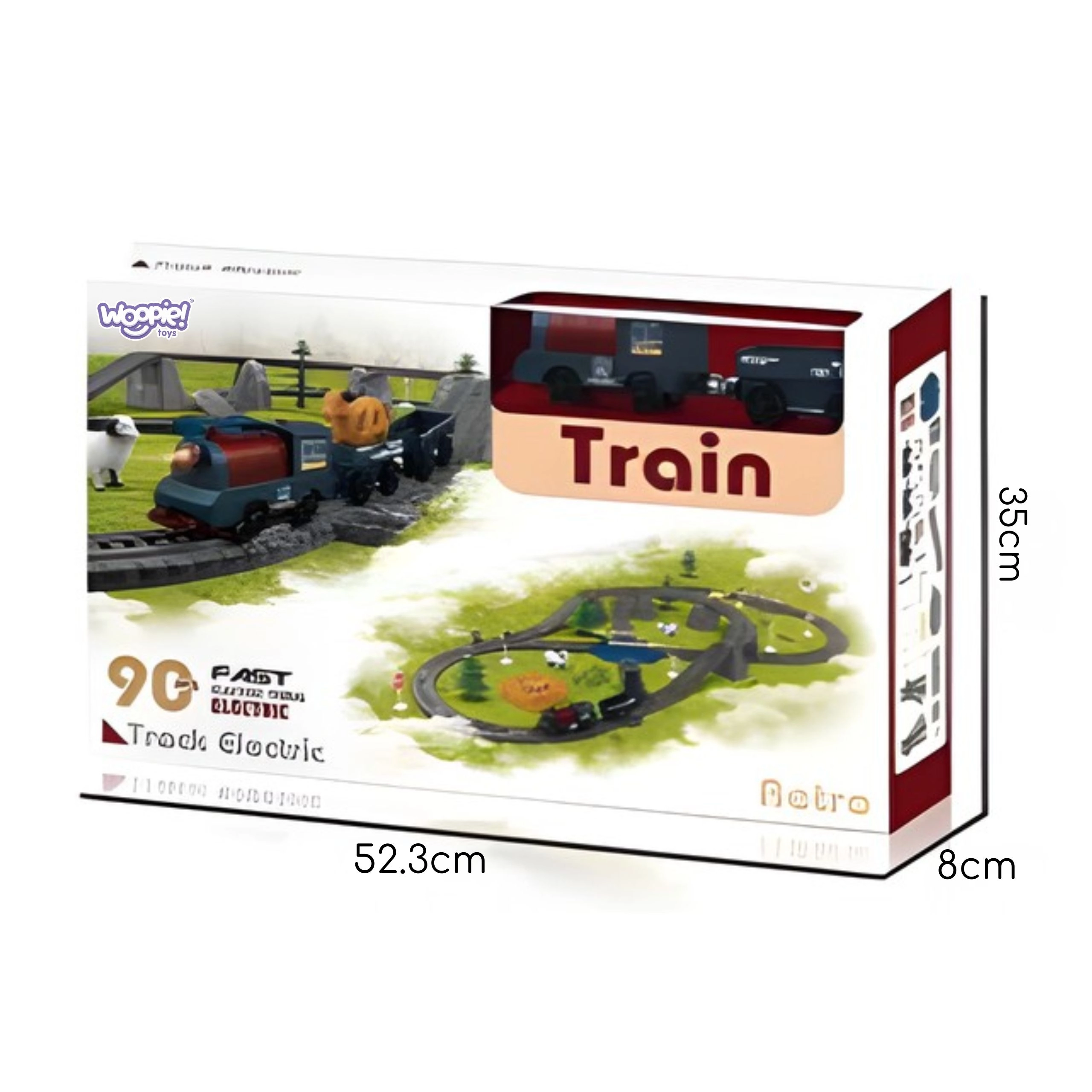 Odkryj świat kolei w domu z elektryczną kolejką XXL marki WOOPIE. Zestaw na baterie oferuje długie tory, różnorodne rozjazdy i przejazdy do tworzenia rozbudowanych tras. Lokomotywa porusza się samodzielnie, ma przednie światło i dźwięki, a w skład zestawu wchodzą wagony towarowe, zwierzątka oraz bogate akcesoria dla realistycznej zabawy. Świetna zabawka dla dzieci od 3 lat, rozwijająca kreatywność, motorykę i wyobraźnię przestrzenną.