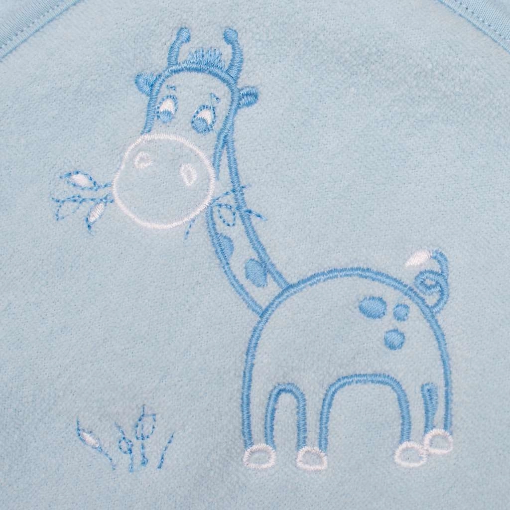 Mięciutki dziecięcy ręcznik z kapturem z frotte jest idealny dla niemowląt i starszych dzieci. Doskonale grzeje po kąpieli, szybko schnie, świetnie chłonie, a kaptur chroni główkę przed chłodem. Zdobiony jest wesołym haftem żyrafy.