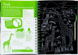 Odkryj fascynujący świat zwierząt z kreatywną aktywną książką, która łączy obrazy do wydrapywania oraz zabavne zadania. W pierwszej części dzieci poznają fakty o żyrafach, lwach czy orangutanach, w drugiej czekają na nie quizy, dopasowywanie, wyszukiwanie, rysowanie i uzupełnianki. Idealna do rozwijania małej motoryki, koncentracji i wiedzy o przyrodzie.