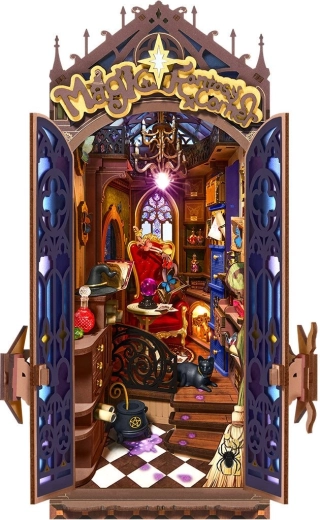 Odkryj magiczny book nook, który zmieni Twoją biblioteczkę w tajemniczy gabinet czarów. Ten zestaw DIY od Rolife oferuje 185 elementów, oświetlenie LED i mnóstwo detali – od krętych schodów, przez łukowe okna, po kociołek i regały ze zwojami. Świetny projekt dla twórczych dusz, a po ukończeniu zyskasz imponującą dekorację do regału lub na biurko.