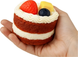 Wiernie imituje warstwowe ciasto z kremem i kolorowymi owocami, dlatego ucieszy zarówno dzieci, jak i dorosłych jako zabawna ozdoba lub drobny upominek. Ochronne opakowanie ułatwia przechowywanie i wręczanie.