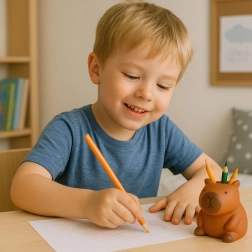 Ten dekoracyjny organizer w kształcie kapibary wykonany jest z wysokiej jakości dekoracyjnego materiału o matowym wykończeniu i ciepłym brązowym odcieniu. Dzięki zaokrąglonym liniom prezentuje się przyjaźnie i świetnie pasuje zarówno do nowoczesnych, jak i przytulnych wnętrz. Górny otwór/słupek pozwala przejrzyście przechowywać artykuły piśmienne, pędzle lub drobiazgi.