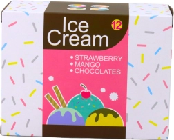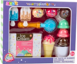 Kolorowe plastikowe lody na patyku i rożki z detalami jak „spływająca polewa” i „posypka” pobudzają wyobraźnię i sprawiają, że serwowanie jest jeszcze zabawniejsze.