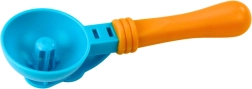 Specjalna dziecięca łyżka z zaokrągloną rączką świetnie leży w dłoni i pomaga formować kulki do kubeczka i na rożek.