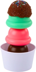 Kolorowe kulki można układać warstwowo, ćwicząc koordynację, cierpliwość i zręczność dzieci podczas „budowania” deserów.
