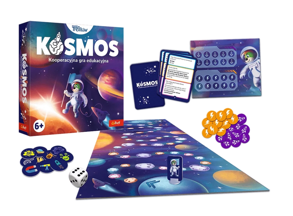 Wyrusz z ulubionymi bohaterami na kosmiczną misję, w której liczą się współpraca, logika i sprytne planowanie. Edukacyjna gra Kosmos Rodzina Treflików łączy zabawne quizy, zarządzanie paliwem i strategię zespołową. Dzieci podczas gry w naturalny sposób poznają podstawy astronomii i fizyki, rozwijają myślenie logiczne i przeżywają ekscytującą podróż na odległą planetę.