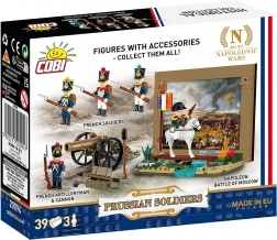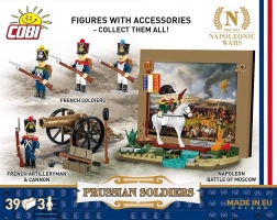 Akcesoria i ekwipunek zaprojektowano na podstawie realiów epoki napoleońskiej: nowa czaka z pomponami, epolety, plecaki oraz karabiny z założonym bagnetem. Zestaw jest w pełni kompatybilny z innymi markami i doskonale rozszerza kolekcję serii NAPOLEONIC WARS.