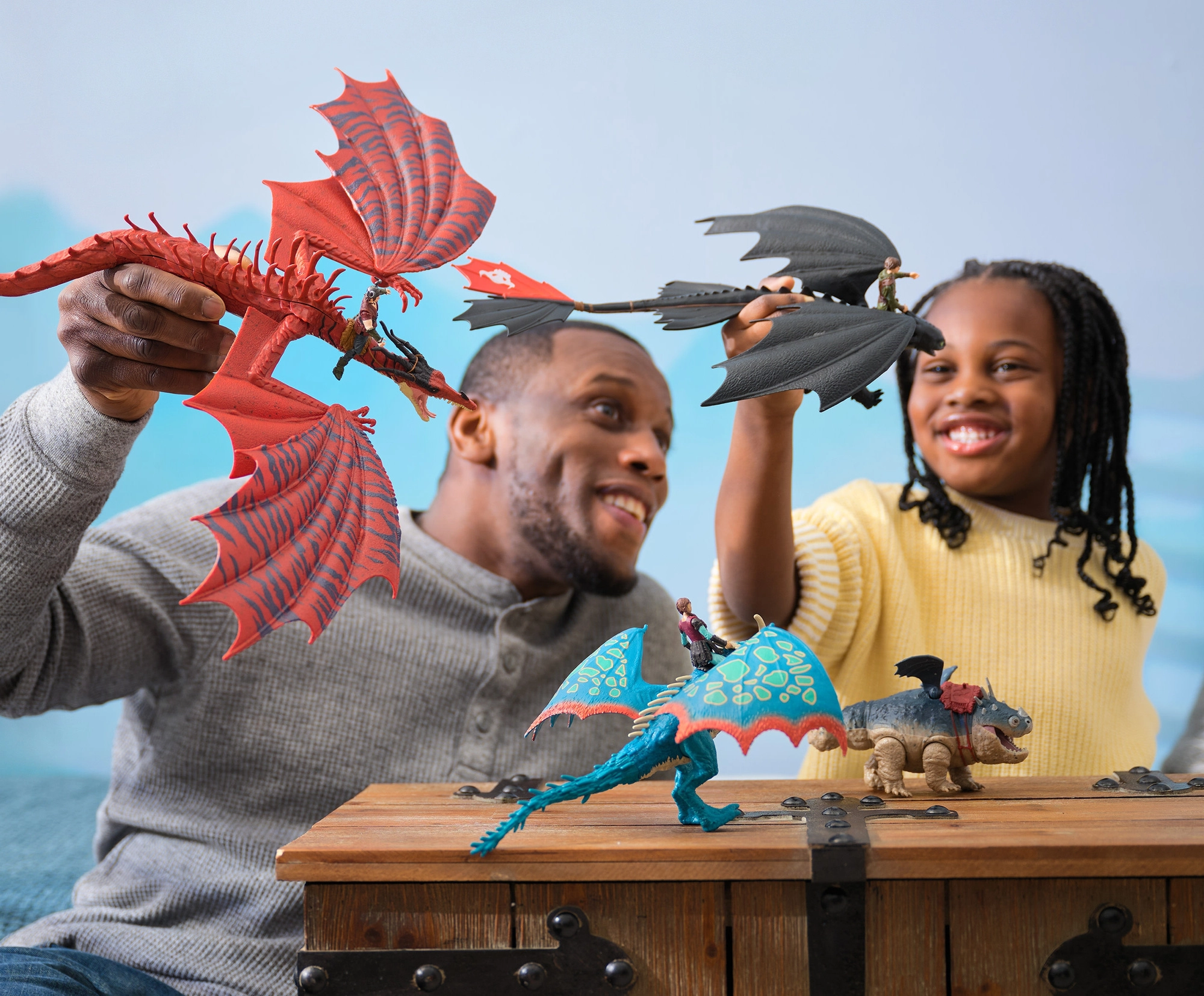 Ten licencjonowany zestaw ze świata JAK WYTRESOWAĆ SMOKA przenosi filmową przygodę do pokoju dziecka. Cztery duże smoki – BEZZUBKA (Toothless), DEADLY NADDER, GRONCKLE i MONSTROUS NIGHTMARE – mają detaliczne rzeźbienie, wyraziste kolory oraz ruchome skrzydła i kończyny do dynamicznego pozowania.