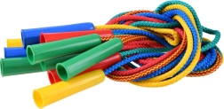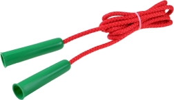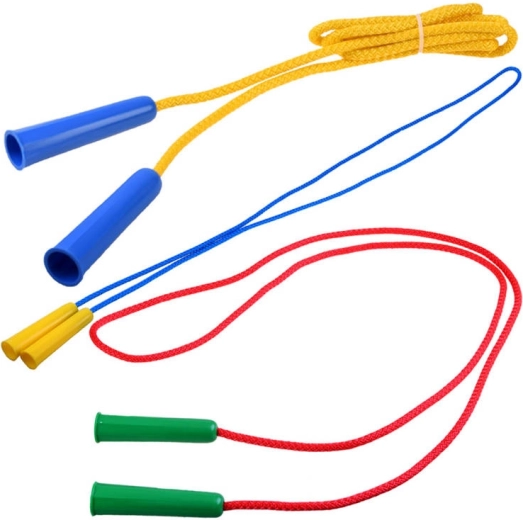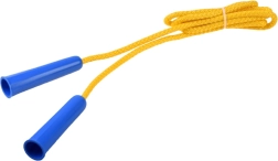 Lekka i wytrzymała dziecięca skakanka z plastikowymi uchwytami i plecioną linką o długości 206 cm do zabawy i treningu. Świetna na szkolne podwórko, plac zabaw i do ćwiczeń w domu. Wspiera koordynację, kondycję i zwinność. Kolor dostarczany jest losowo.