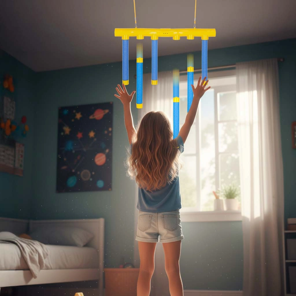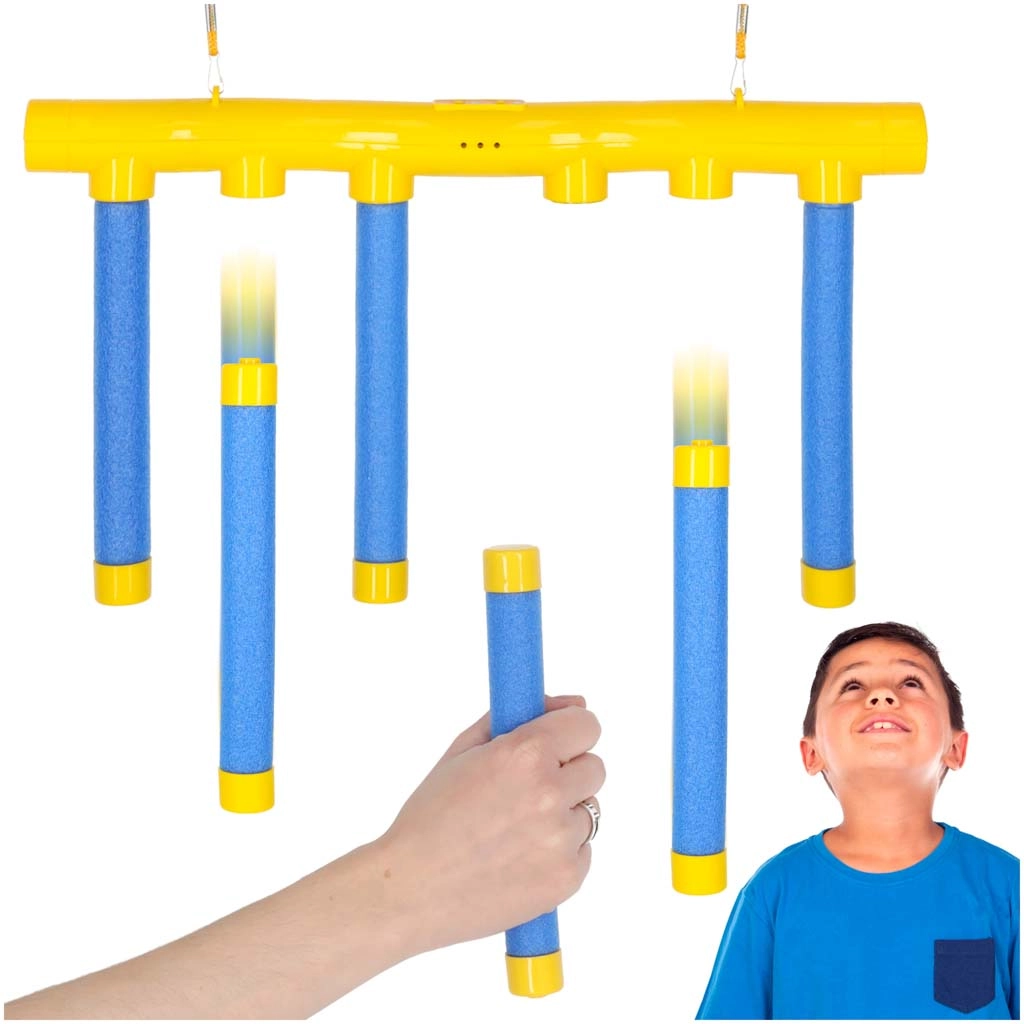 Ćwicz refleks z interaktywną grą Spadające patyczki. Łap patyczki, zanim spadną, i baw się całą rodziną. Gra oferuje 3 prędkości spadania, komunikaty głosowe, wskaźnik LED oraz automatyczne wyłączanie oszczędzające energię. Łatwe zawieszenie na haczykach lub pod sufitem oraz ładowanie USB zapewniają szybką gotowość do akcji.