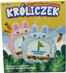 Zabawna magnetyczna mozaika w kształcie króliczka rozwija dziecięcą wyobraźnię i zręczność. Za pomocą magnetycznego pióra dzieci łatwo przesuwają kolorowe guziczki i układają obrazki według szablonów lub własnej fantazji. W zestawie znajdują się kolorowe magnetyczne guziczki, magnetyczne pióro w uchwycie oraz karty z szablonami. Świetna pomoc do rozwijania motoryki małej, kreatywności i koncentracji.