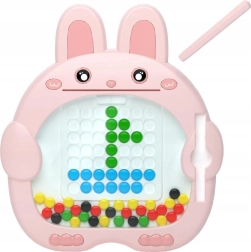 Ta kreatywna magnetyczna tablica w kształcie uroczego króliczka zajmie dzieci na długie godziny. Magnetyczne pióro łatwo wyciąga i przesuwa kolorowe guziczki w siatce, dzięki czemu dzieci mogą tworzyć obrazki krok po kroku według dołączonych szablonów lub całkowicie po swojemu.