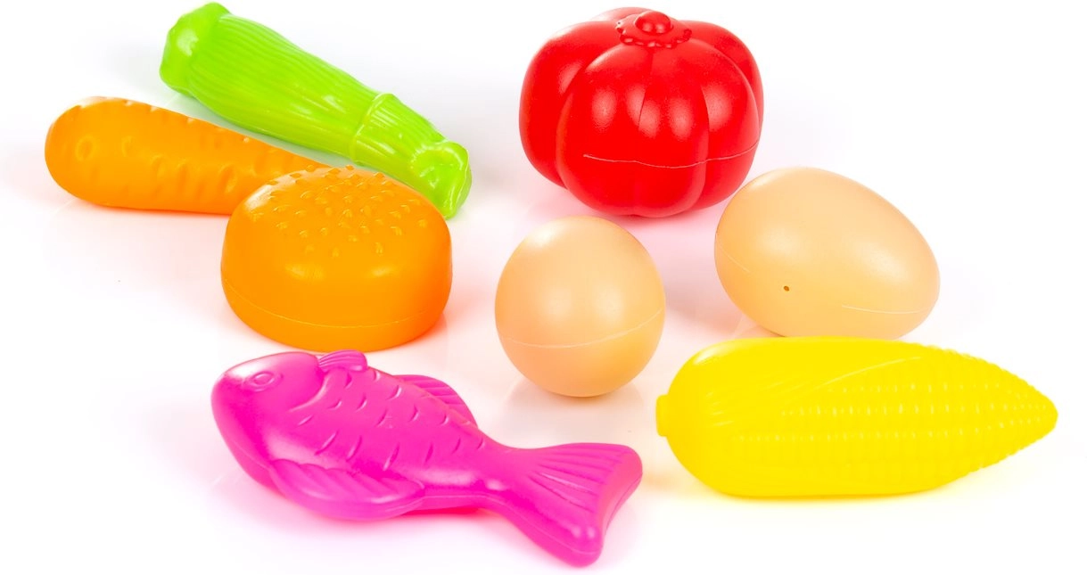Zestaw zawiera realistyczne makiety owoców i warzyw w żywych kolorach, które pomagają w rozpoznawaniu kształtów i wspierają kreatywne odgrywanie ról.