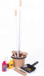 • Pełne wyposażenie: wiadro z wyciskaczem, miotła/mop, zmiotka i szufelka, szczotka, spryskiwacze i buteleczki na „środki czyszczące”.
