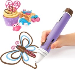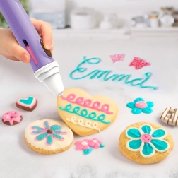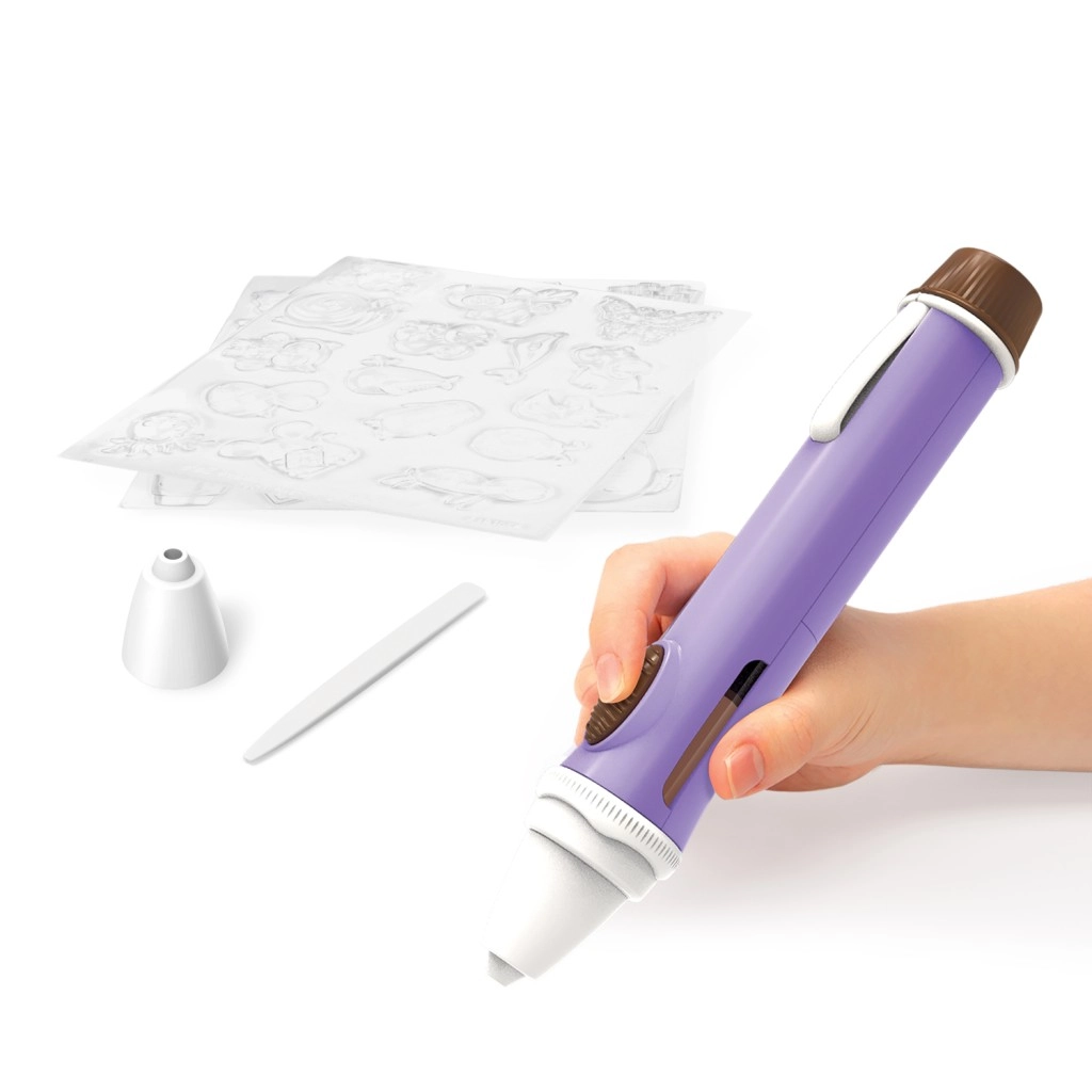 Zmień słodkie przysmaki w małe dzieła sztuki. Czekoladowe pióro pozwala dzieciom pisać, rysować i tworzyć różne kształty z roztopionej czekolady. Dzięki ergonomicznemu uchwytowi i precyzyjnej końcówce wygodnie się nim pracuje także mniejszym dłoniom, a szybko tężejąca czekolada daje natychmiastowy efekt na ciasteczkach, cupcake’ach, owocach i innych pysznościach.
