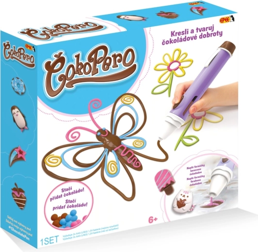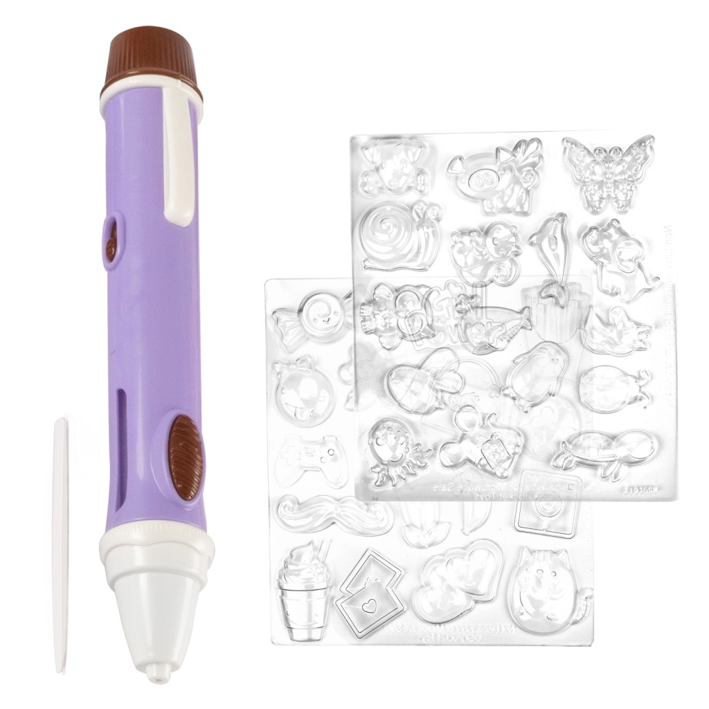 W zestawie znajdują się dwie przezroczyste foremki łącznie z 50 motywami – od zwierzątek, przez serduszka, po kwiaty i dekoracje. Dzieci z łatwością stworzą piękne czekoladowe ozdoby i figurki, które ucieszą rodzinę i przyjaciół. Wystarczy napełnić pióro roztopioną czekoladą zgodnie z instrukcją, nacisnąć przycisk i zacząć tworzyć.