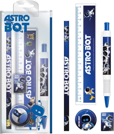 Praktyczny szkolny zestaw na licencji Astrobot zawiera wszystko, co potrzebne do pisania i mierzenia. W kompaktowym plastikowym etui znajdziesz linijkę 15 cm, temperówkę, gumkę, długopis oraz ołówek HB – idealny do szkoły i w podróż.