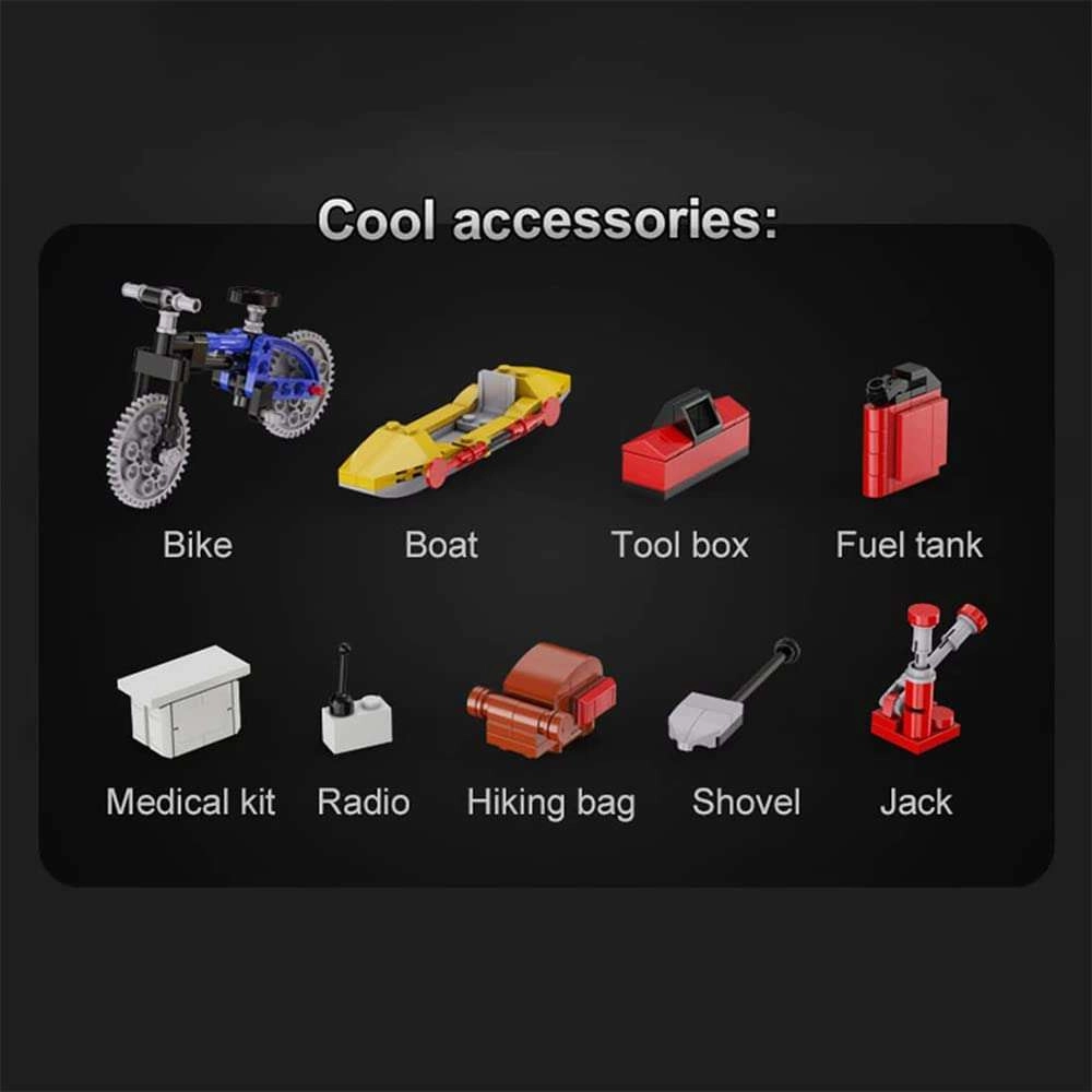 Model można rozbudować o baterię, silnik, serwo, kontroler i LED (nie wchodzą w skład zestawu). Zyskasz jazdę do przodu/tyłu, skręcanie oraz włączanie świateł.