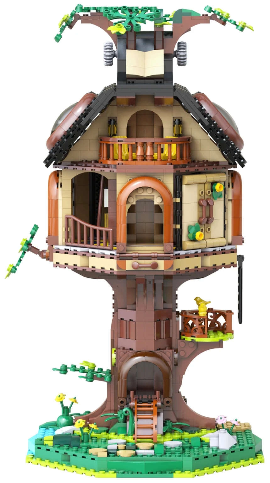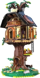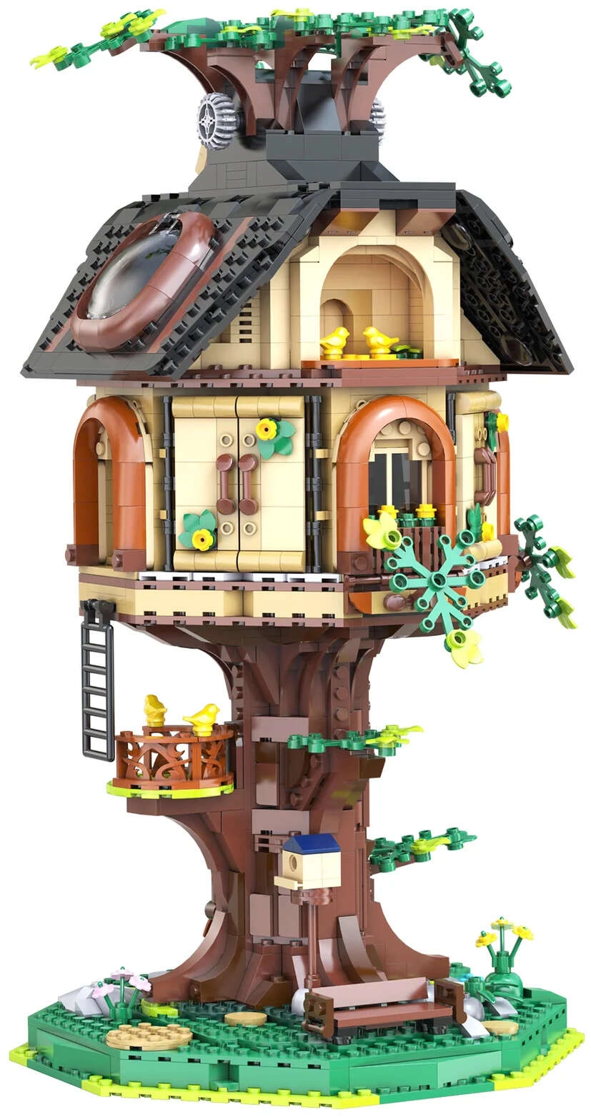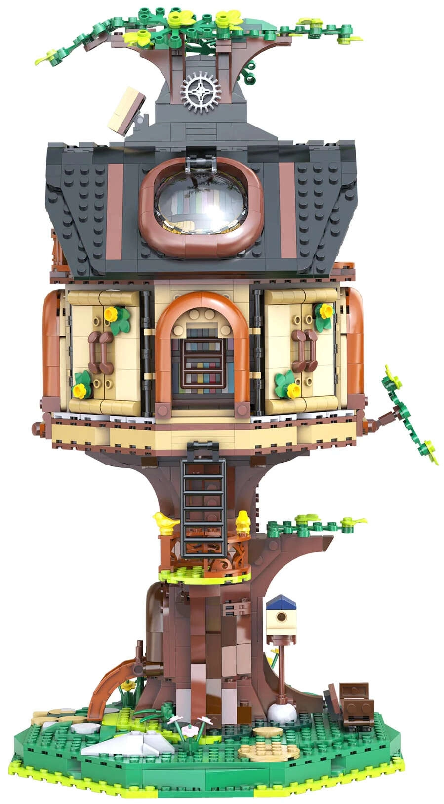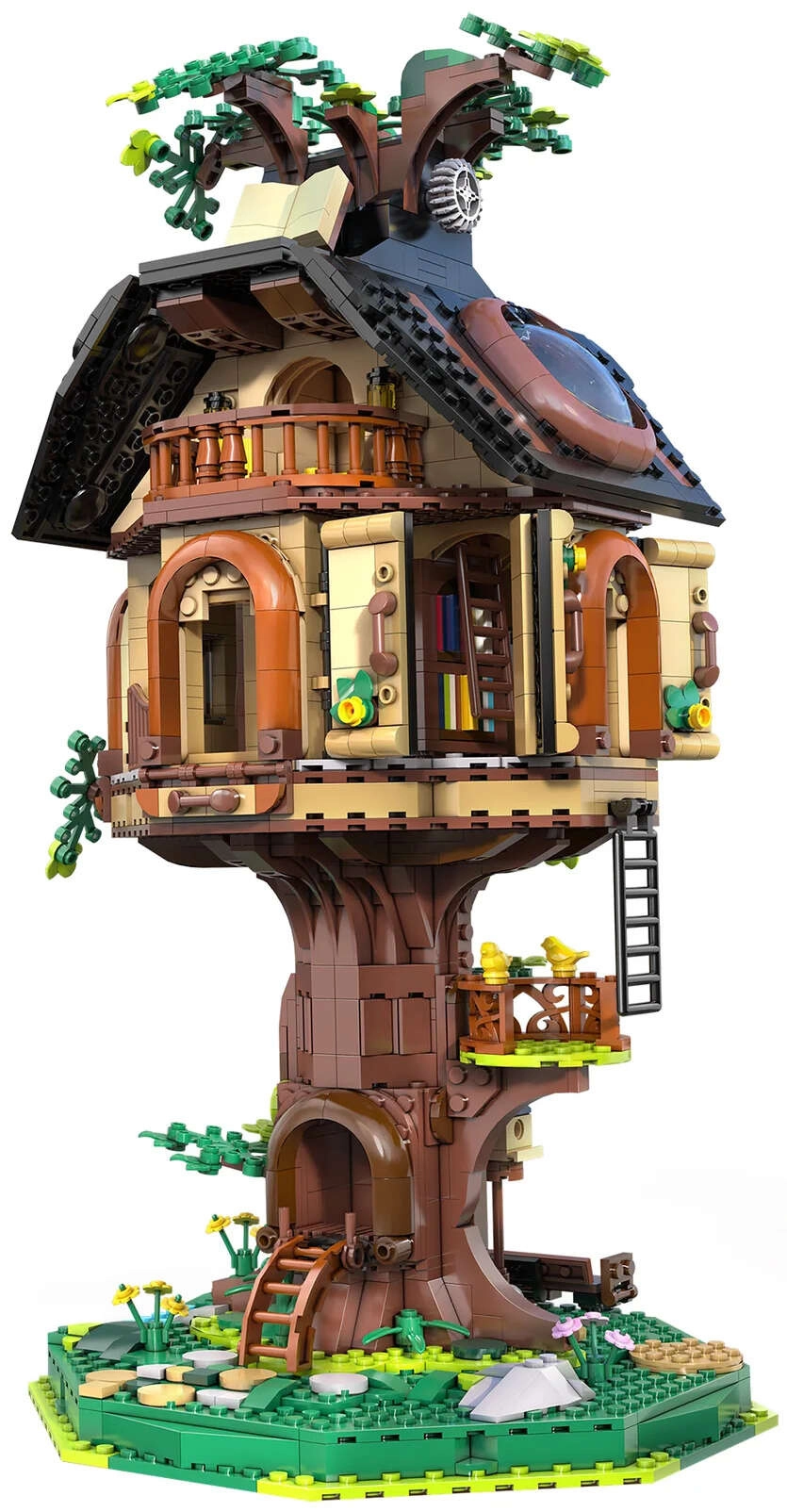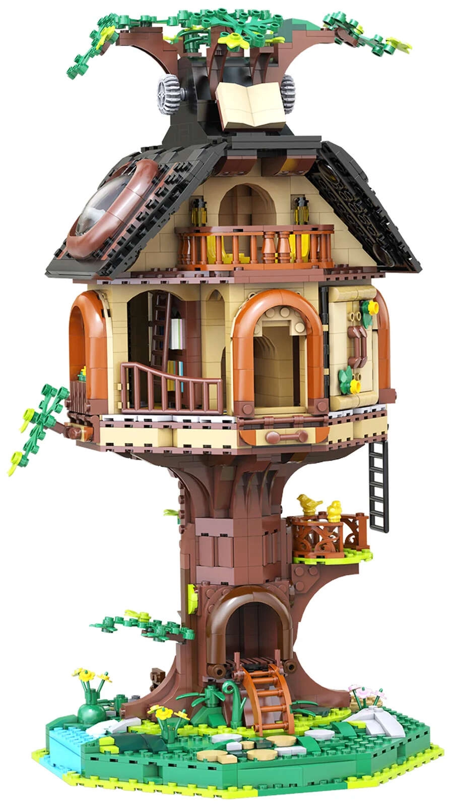Zbuduj wyjątkową bibliotekę w domku na drzewie z dwupoziomowym układem: na parterze znajduje się biblioteka z regałami, oknami i drabinkami, na piętrze zaś przytulna czytelnia z teleskopem. Drzewo stoi na malowniczej polanie z kwiatami i budką lęgową, nie brakuje otwieranego dachu ani balkonu do obserwacji ptaków.