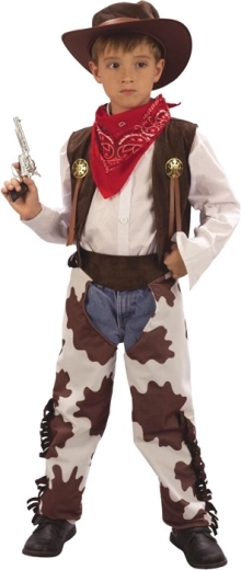 Stylowy dziecięcy kostium kowboja dla wzrostu 120–130 cm zamieni każdego małego poszukiwacza przygód w bohatera Dzikiego Zachodu. Zawiera wszystko, co potrzebne do autentycznego wyglądu: kamizelkę, chapsy, chustę i kapelusz. Idealny na karnawał, bal przebierańców lub imprezy tematyczne.