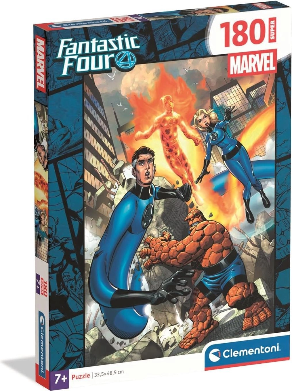 Ciesz się zabawą z wysokiej jakości puzzlami CLEMENTONI z motywem FANTASTYCZNEJ CZWÓRKI. Zestaw zawiera 180 elementów, a po ułożeniu tworzy obraz o wymiarach ok. 33,5 × 48,5 cm. Świetny wybór dla dzieci i fanów superbohaterów, który rozwija logikę, cierpliwość i koncentrację.