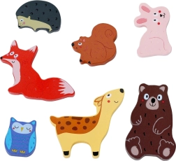 Te wysokiej jakości drewniane puzzle z leśnymi zwierzątkami ucieszą najmłodszych odkrywców od 18. miesiąca życia. Solidna podkładka i grube elementy w kształcie lisa, niedźwiedzia, jelenia, sowy, królika, jeża i wiewiórki są zaprojektowane tak, by łatwo je chwytać małymi rączkami. Kolorowe ilustracje wspierają rozpoznawanie kształtów i zwierząt oraz naturalnie prowadzą do pierwszej nauki poprzez zabawę.