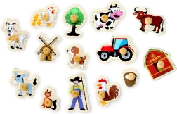 Drewniane puzzle farma to świetna edukacyjna zabawka dla małych odkrywców. Na solidnym podkładzie czeka 14 elementów do wtykania ze zwierzętami i motywami z farmy, które dzieci łatwo chwytają dzięki praktycznym uchwytom. Wysokiej jakości drewniane wykonanie zapewnia trwałość nawet przy codziennej zabawie.