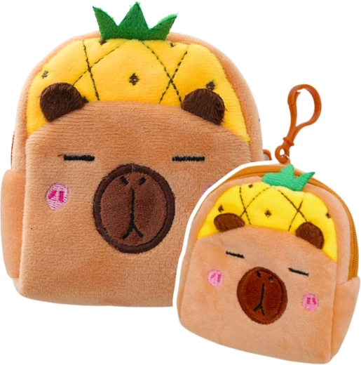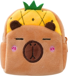 Uroczy pluszowy portfelik w kształcie kapibary z motywem żółtego ananasa jest idealny dla dzieci i miłośników miękkich dodatków. Jest lekki, miły w dotyku i dzięki kompaktowym wymiarom 9,5 × 8 cm zmieści się do torebki, plecaka lub piórnika. Zamknięcie na zamek bezpiecznie przechowa drobiazgi, a plastikowy klips umożliwi łatwe przypięcie do kluczy czy torby.