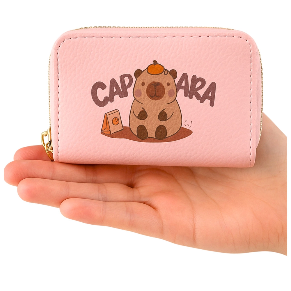 Stylowy i funkcjonalny portfel z motywem kapibary ucieszy miłośników uroczych dodatków oraz tych, którzy chcą mieć karty i gotówkę przejrzyście uporządkowane. Dwie oddzielne komory na zamek oraz wewnętrzne harmonijkowe przegródki zapewniają dużo miejsca na karty płatnicze, banknoty, monety i drobne dokumenty.
