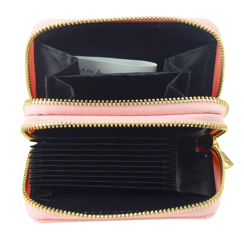 Portfel wykonano z wysokiej jakości materiału syntetycznego o przyjemnej w dotyku strukturze imitującej skórę, odpornego na codzienne użytkowanie. Dzięki kompaktowym wymiarom 12,5 × 8,5 × 4,5 cm łatwo mieści się w torebce, plecaku i kieszeni, oferując jednocześnie zaskakującą pojemność.