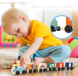 Zabawny i edukacyjny pociąg do składania z kolorowymi klockami łączy tworzenie z nauką. Zawiera klocki z literami, cyframi i obrazkami, wspierające rozwój kreatywności, małej motoryki oraz logicznego myślenia. Lekkie i wytrzymałe elementy o gładkich krawędziach są idealne dla małych dziecięcych rączek.