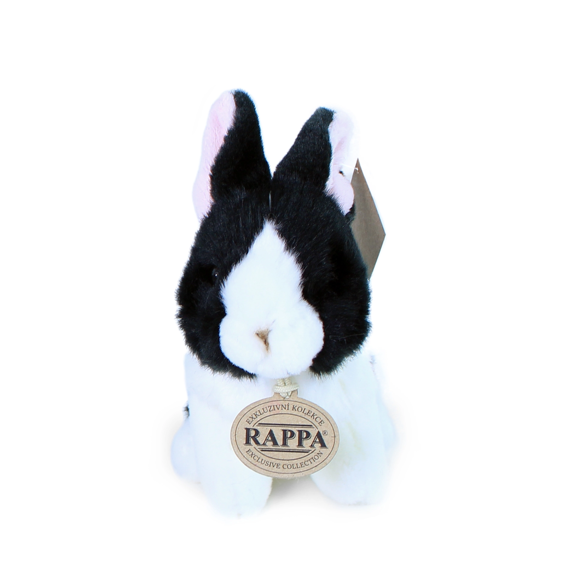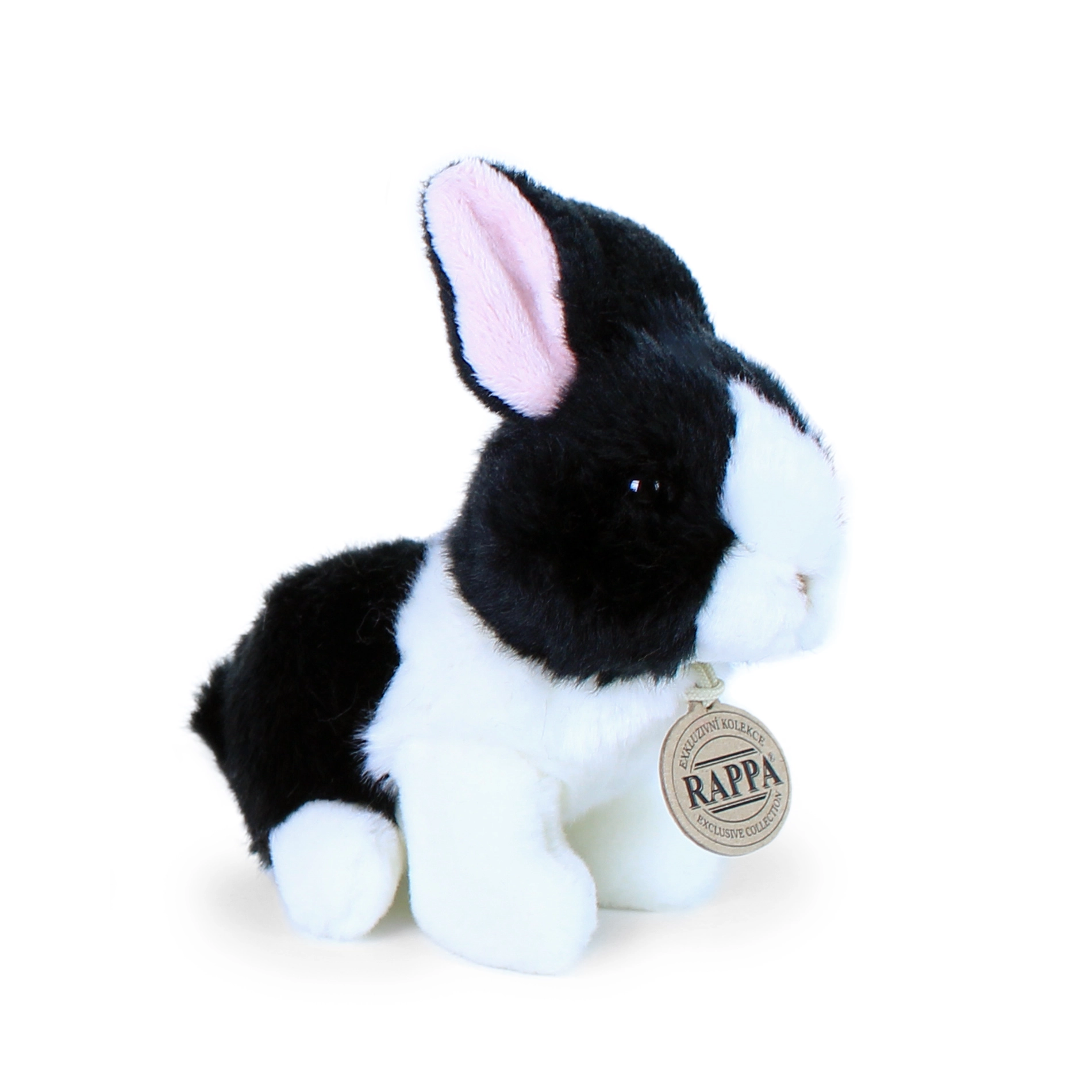 Uroczy biało‑czarny pluszowy królik o wysokości 16 cm z ekskluzywnej kolekcji marki RAPPA zachwyca realistycznym wyglądem i miękkim, przyjaznym dla środowiska materiałem. Dzięki ręcznemu wykonaniu wygląda jak żywy i jest bezpieczny także dla noworodków dzięki wypełnieniu z recyklingowanych butelek PET.