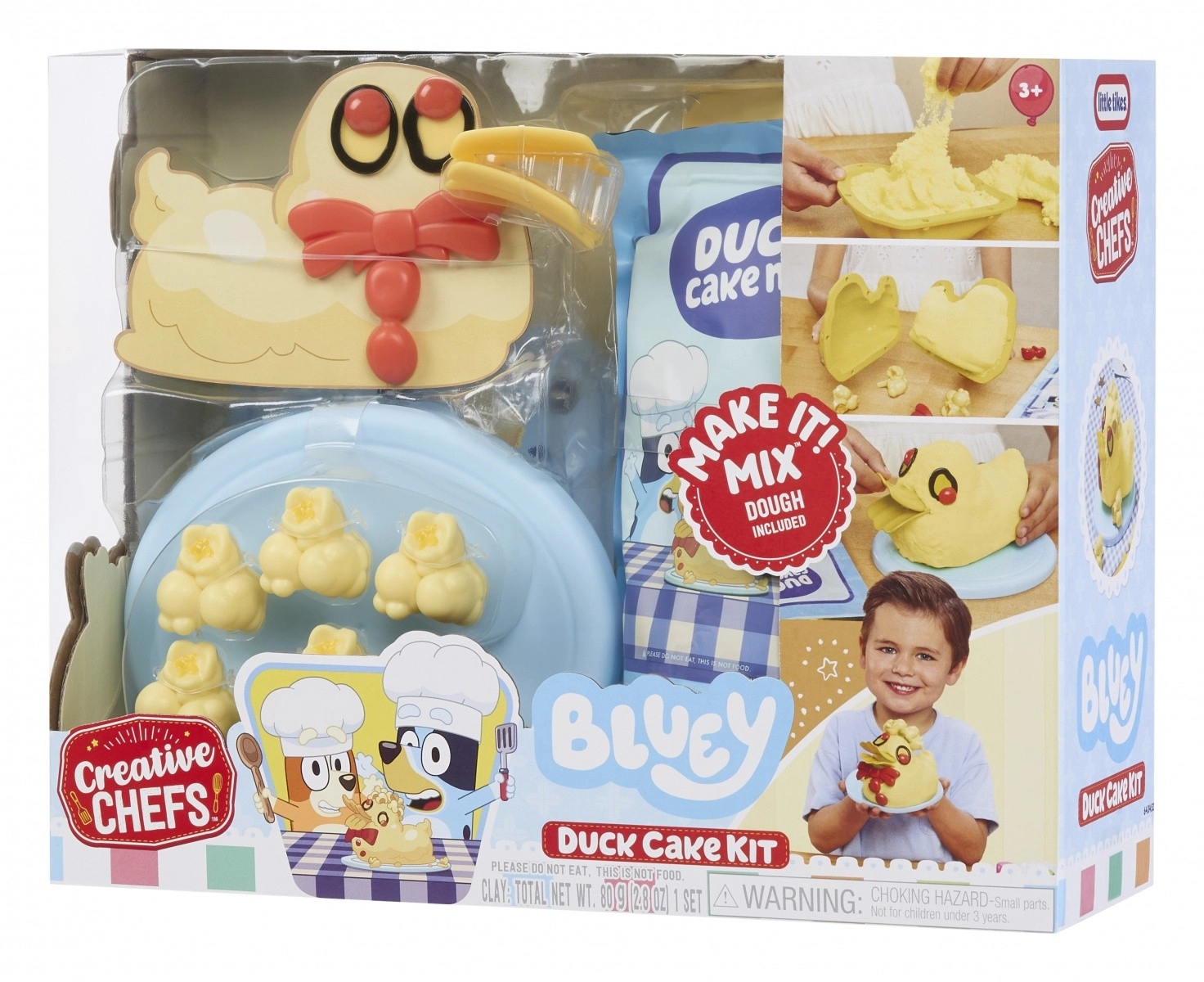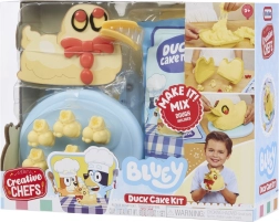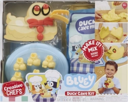 Zestaw CREATIVE CHEFS BLUEY – tort „Kaczuszka” zapewnia dzieciom godziny zabawy i rozwija ich wyobraźnię. Zawiera 15 realistycznych akcesoriów kuchennych, formę w kształcie kaczuszki oraz masę plastyczną Make It! Mix. W komplecie znajduje się także obrazkowy przepis, który uczy dzieci postępować według prostych instrukcji i wspiera kreatywną zabawę oraz odgrywanie ról.