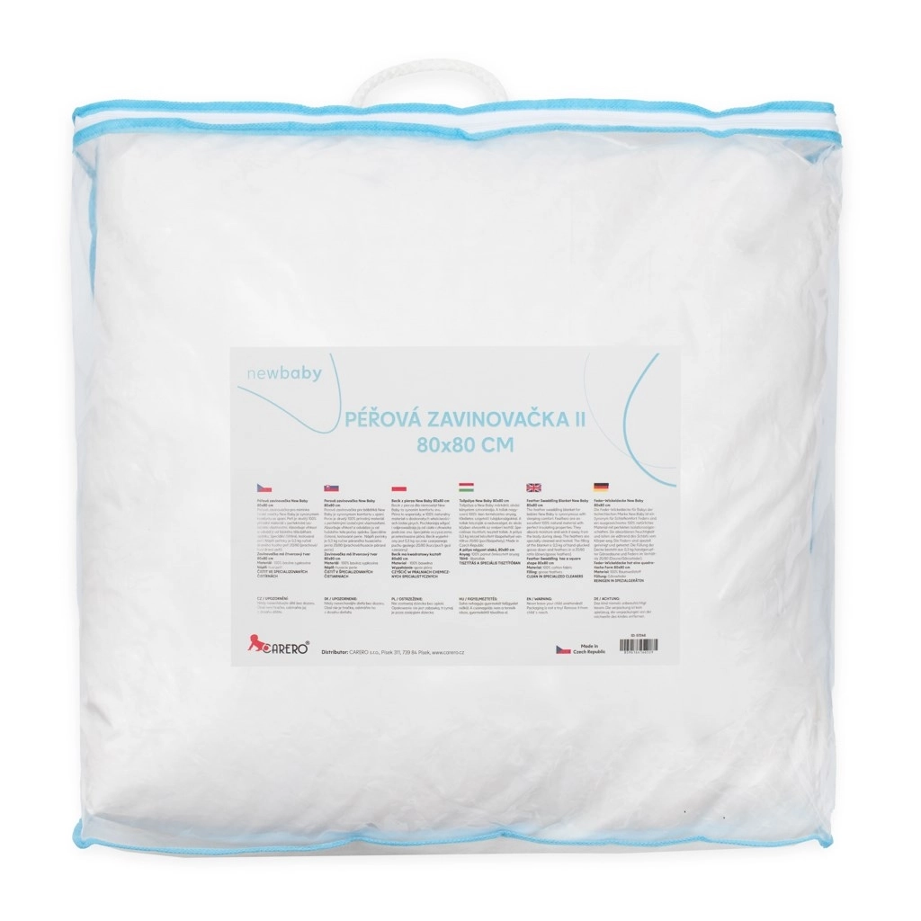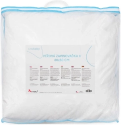 Kwadratowy kształt 80×80 cm bez wydłużonego rogu umożliwia łatwe zawinięcie i uniwersalne zastosowanie – rożka można używać także jako kołderki. Pokrycie z 100% bawełnianej tkaniny inletowej jest przyjemne w dotyku i delikatne dla wrażliwej skóry dziecka. Produkt jest wyprodukowany w Czechach z starannie czyszczonego i testowanego pierza.