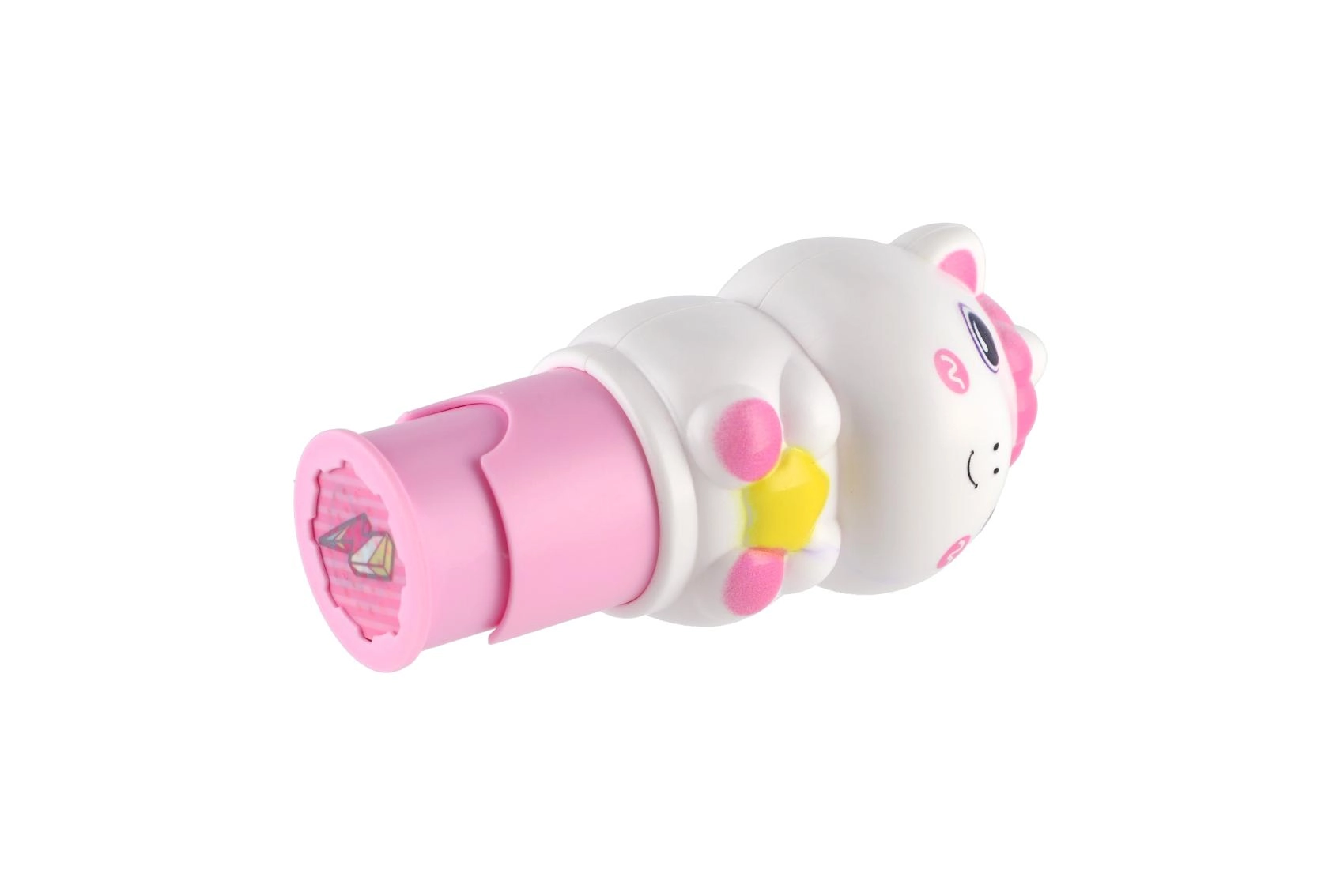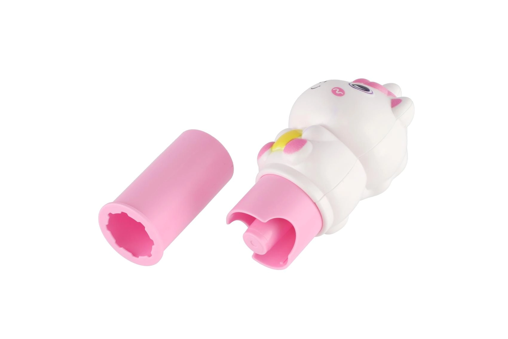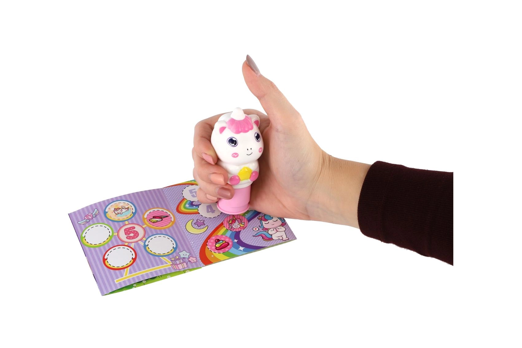 Lekki, zaokrąglony kształt jednorożca wygodnie leży w dłoni i ułatwia dzieciom pracę podczas ozdabiania zeszytów i wykonywania aktywności.