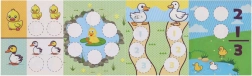 - Pieczątka, okrągłe naklejki z motywami kaczuszek, tematyczny arkusz